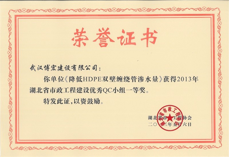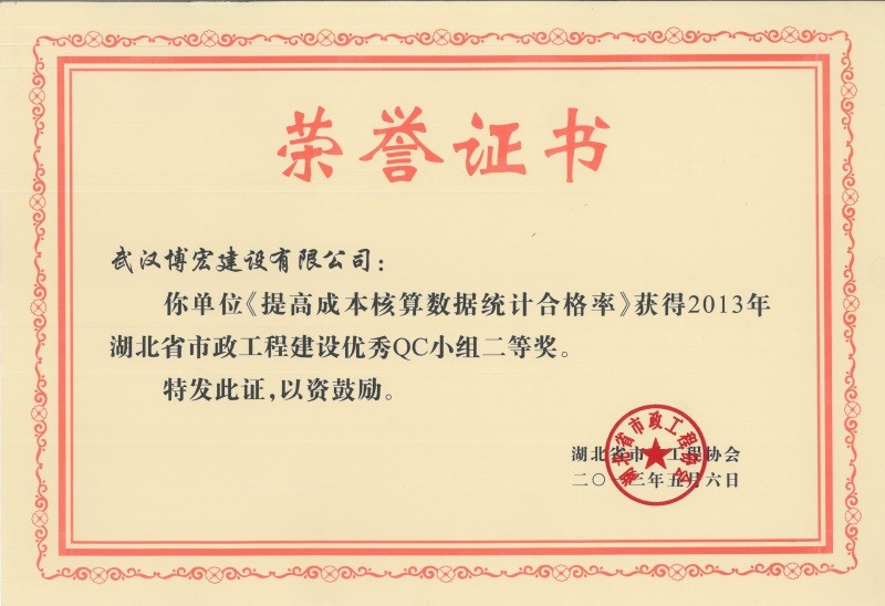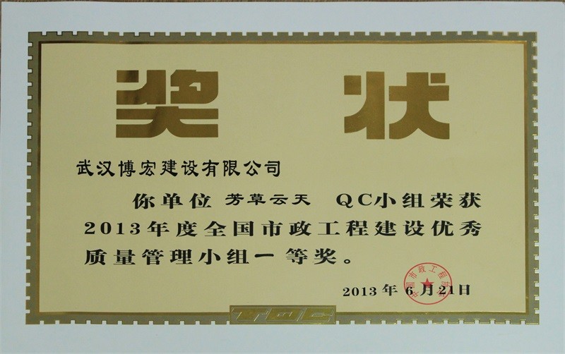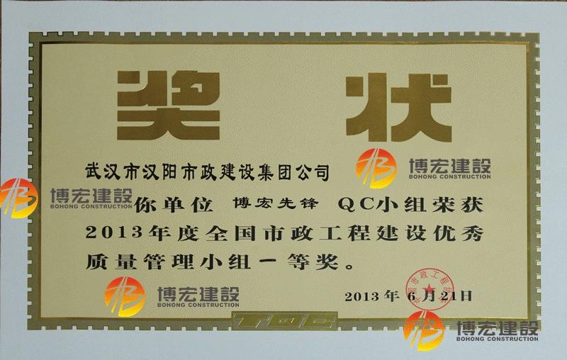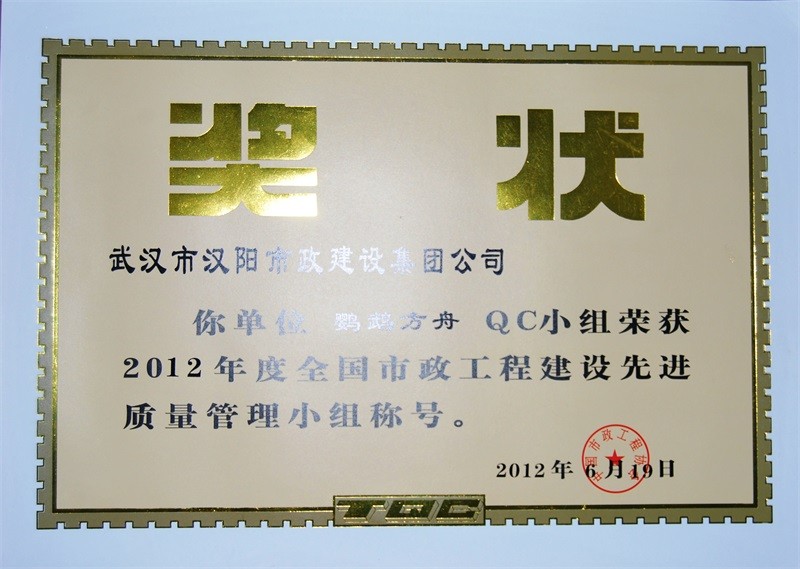2012年度全国市政工程建设先进质量管理小组