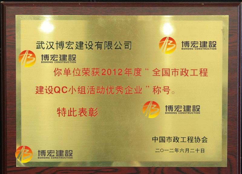 2012年度全国市政工程建设QC小组活动优秀企业