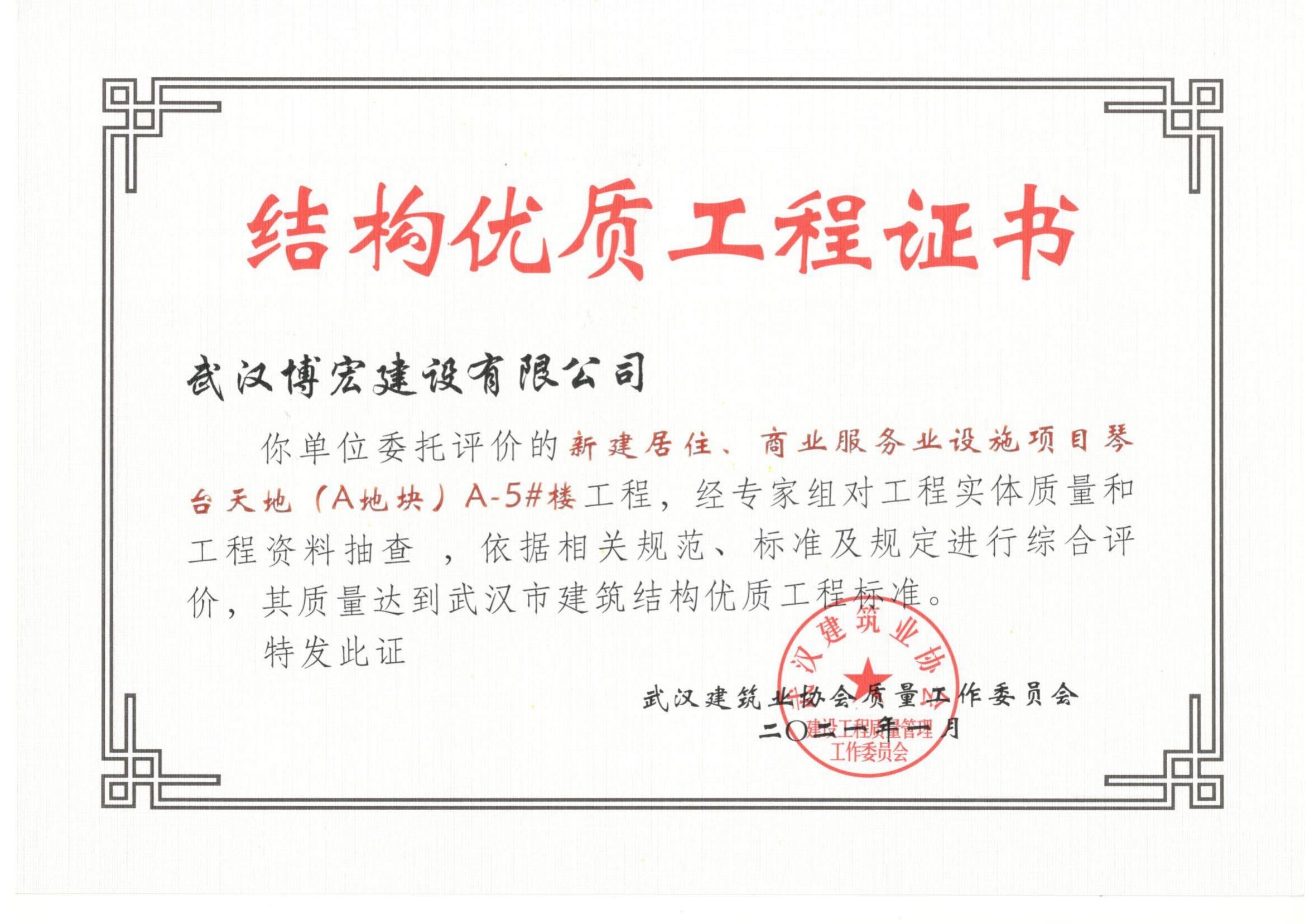 2021年武汉市结构优质工程(琴台天地(A地块)5栋