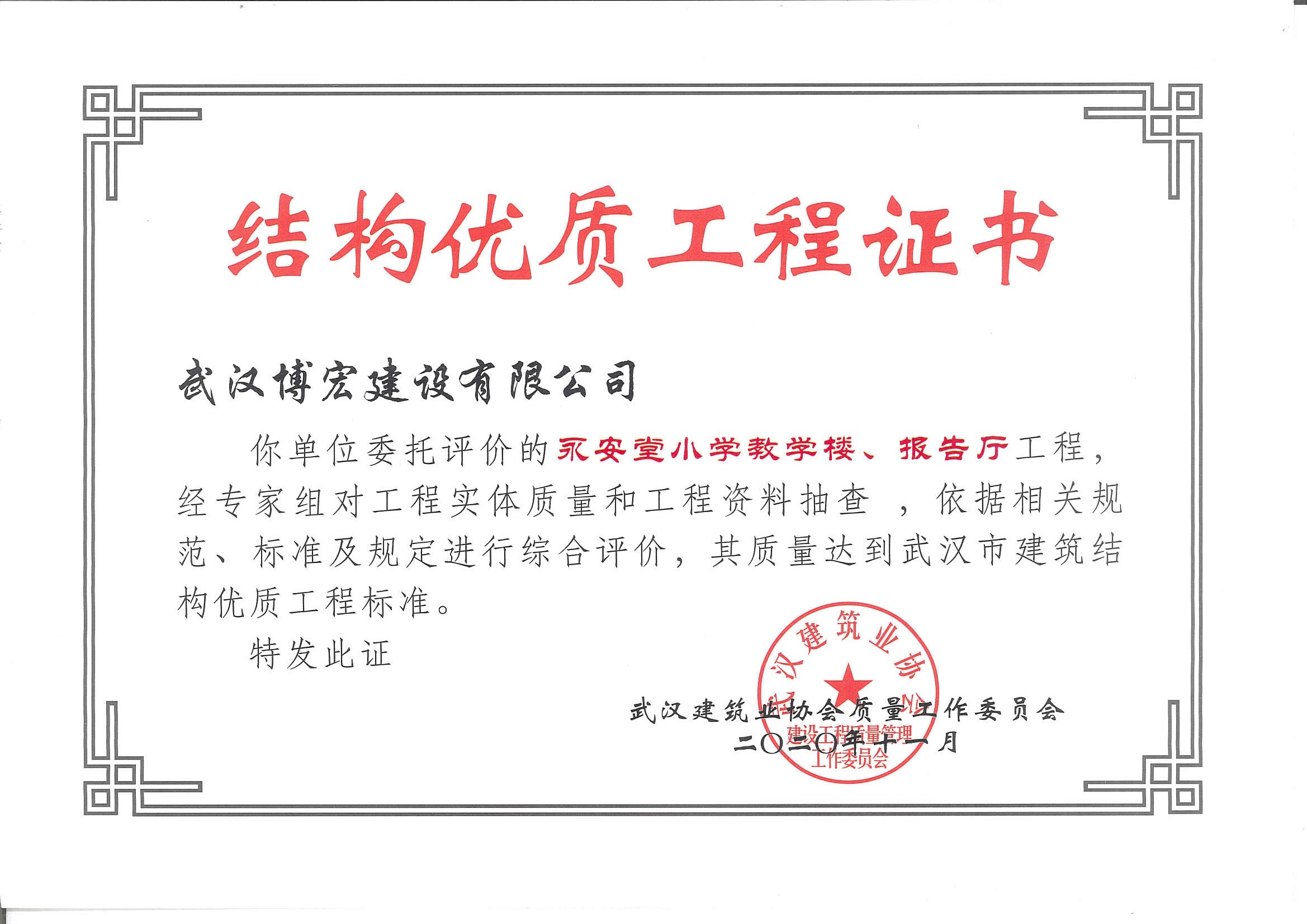 永安堂小学教学楼、报告厅武汉市建筑结构优质工程