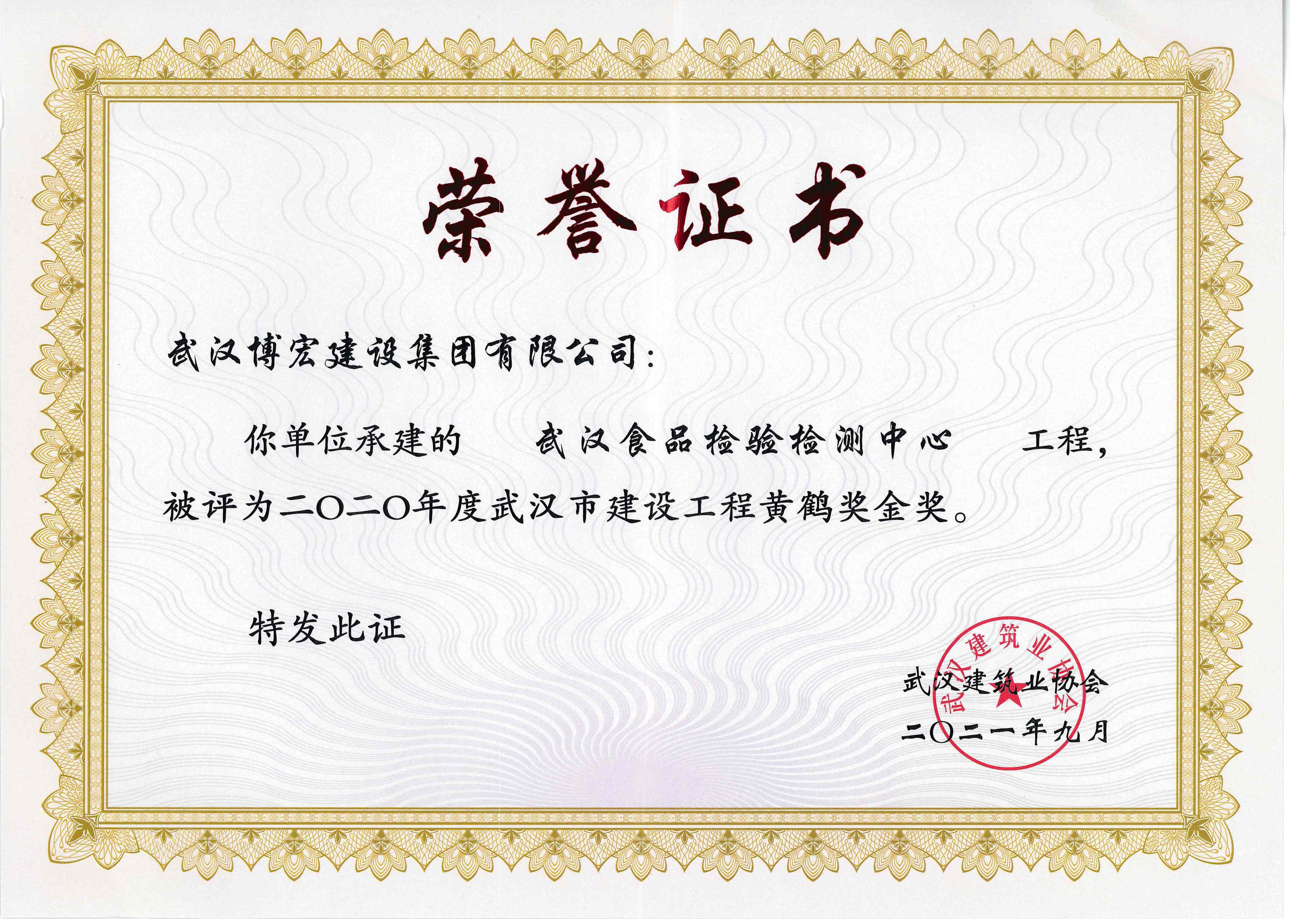2020年度武汉市建设工程黄鹤奖金奖(食检中心)
