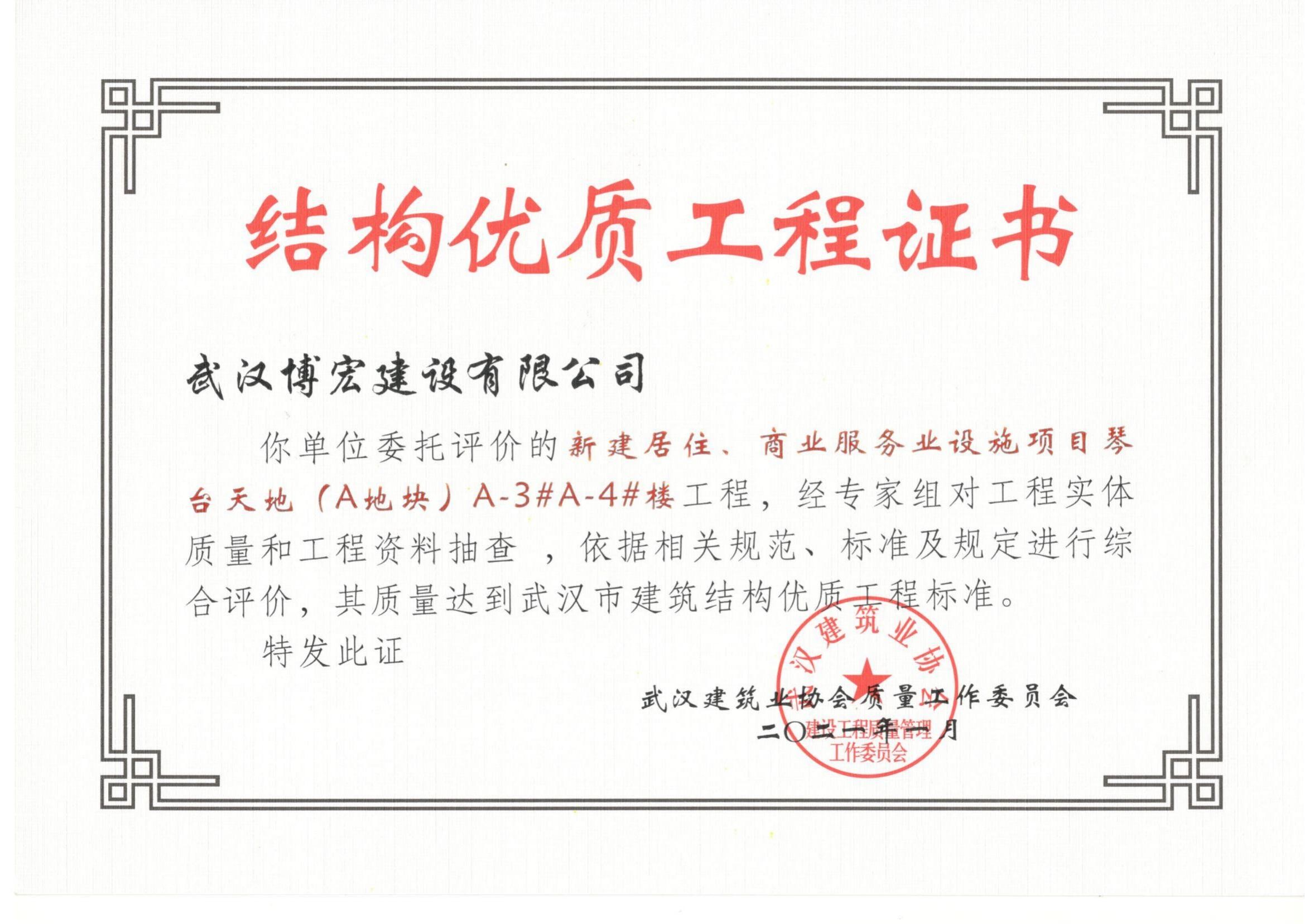 2021年武汉市结构优质工程(琴台天地(A地块)3、4栋