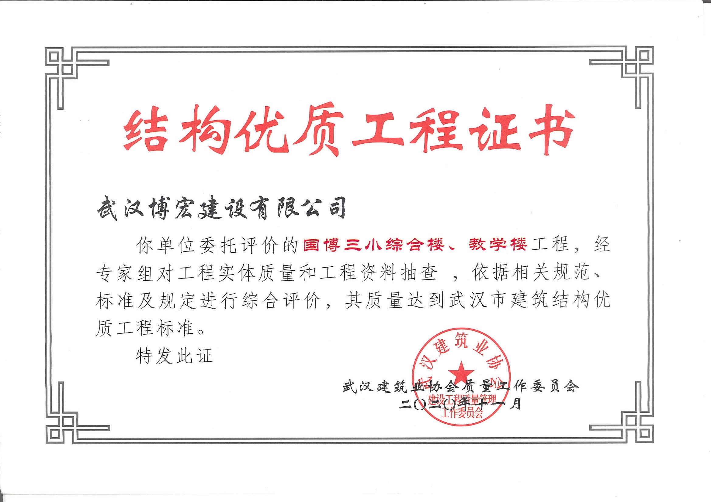 国博三小综合楼、教学楼武汉市建筑结构优质工程