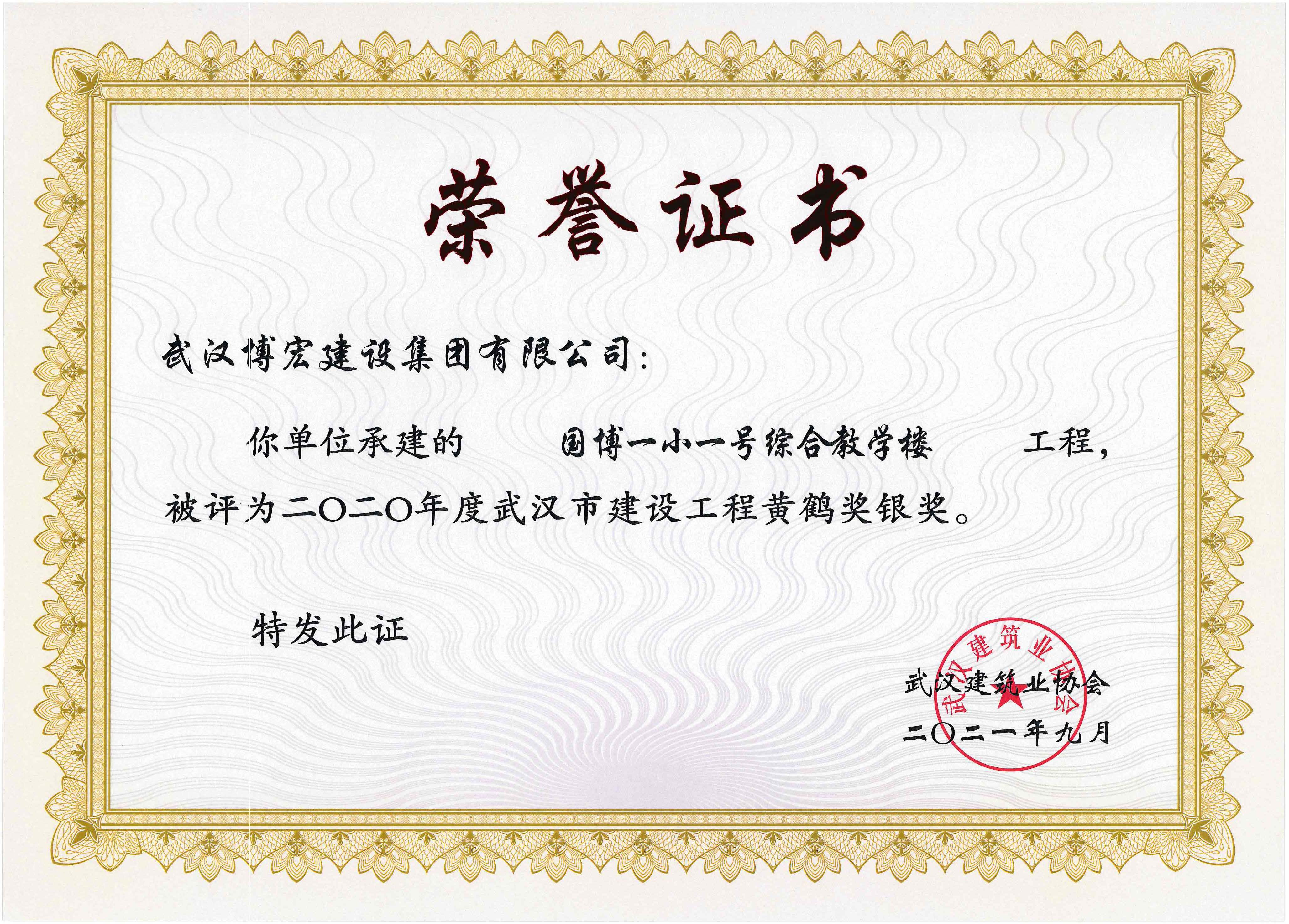 2020年度武汉市建设工程黄鹤奖银奖-国博一小一号综合教学楼