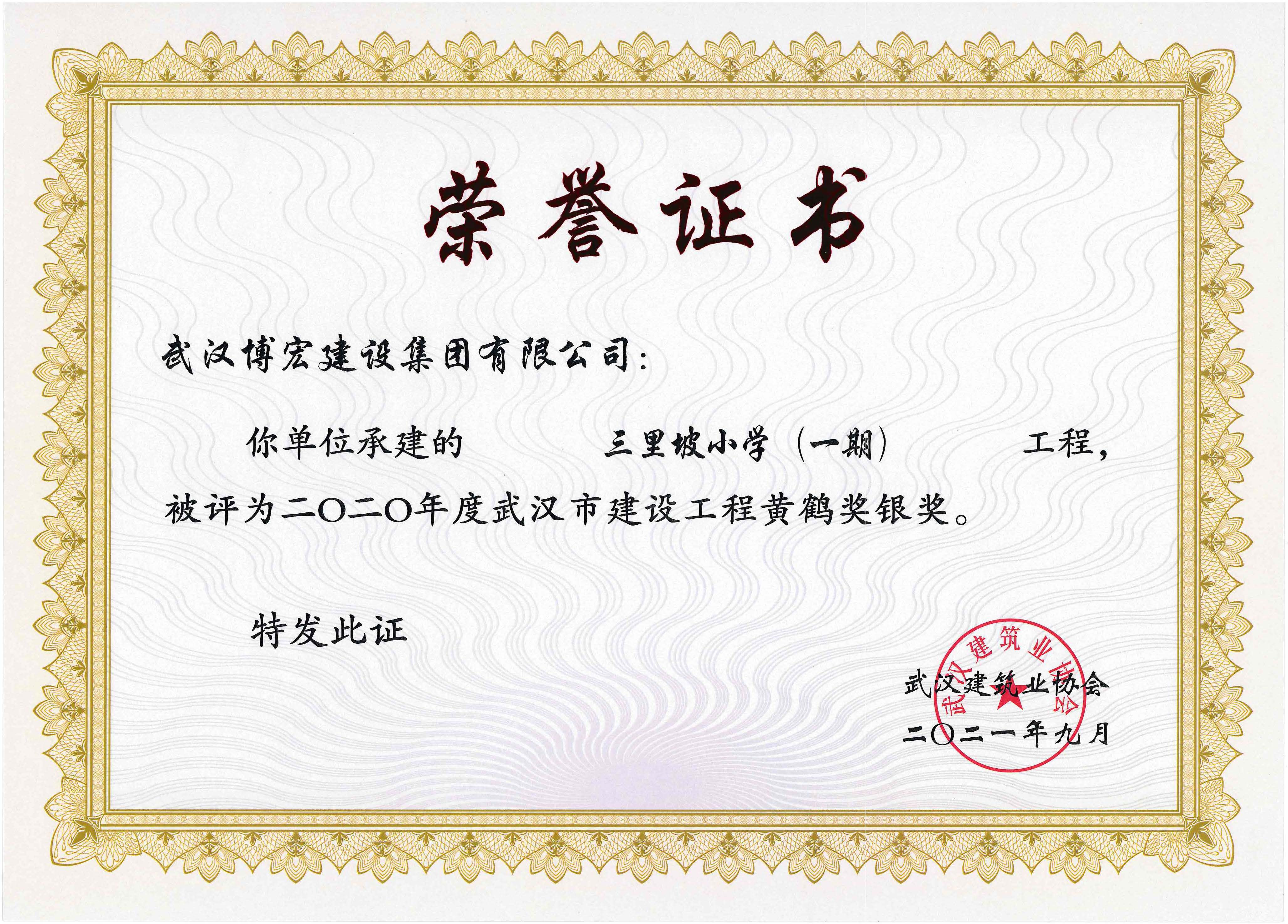2020年度武汉市建设工程黄鹤奖银奖-三里坡小学(一期)