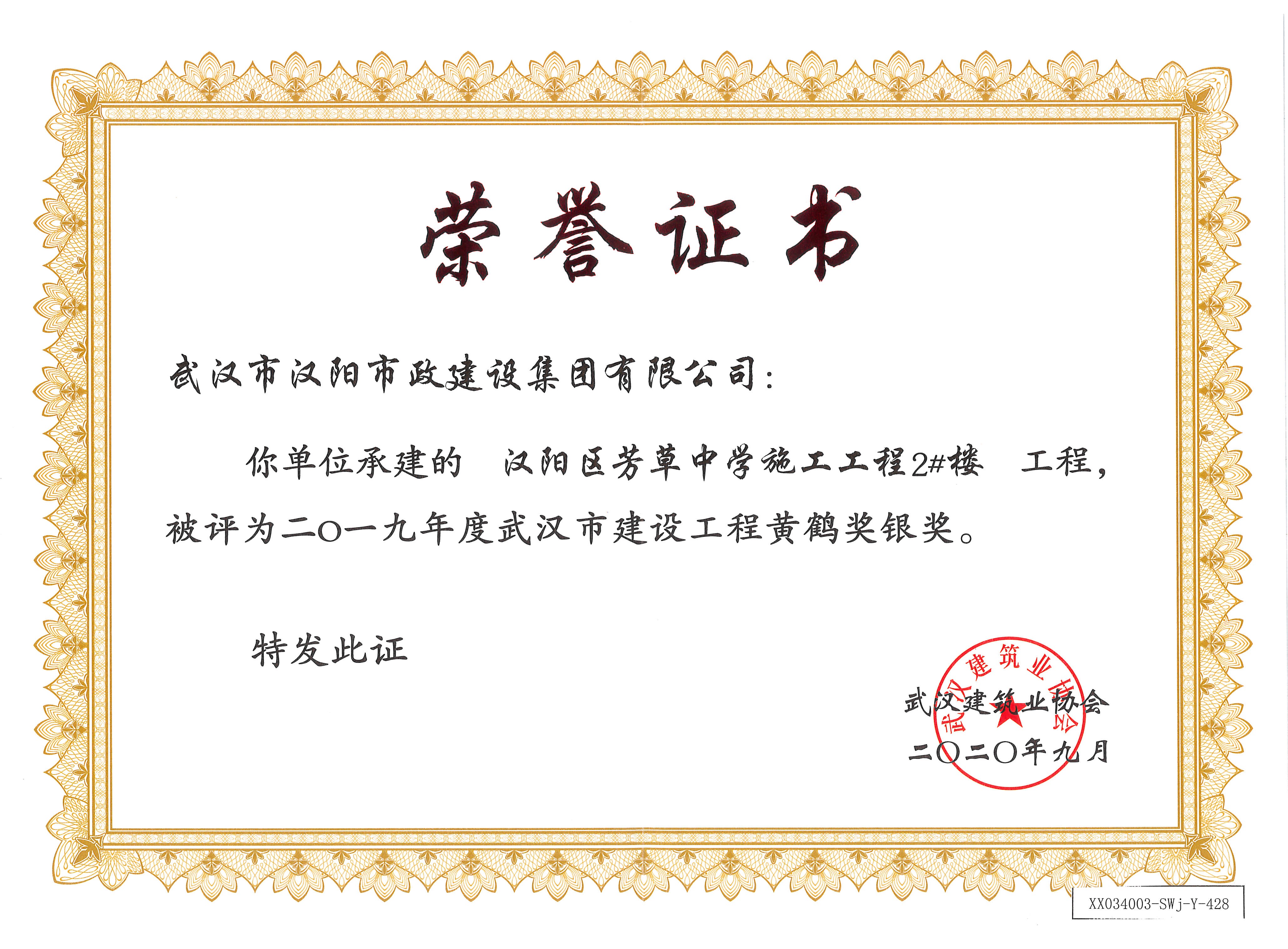 2019年汉阳区芳草中学施工工程2#楼工程黄鹤将 银奖