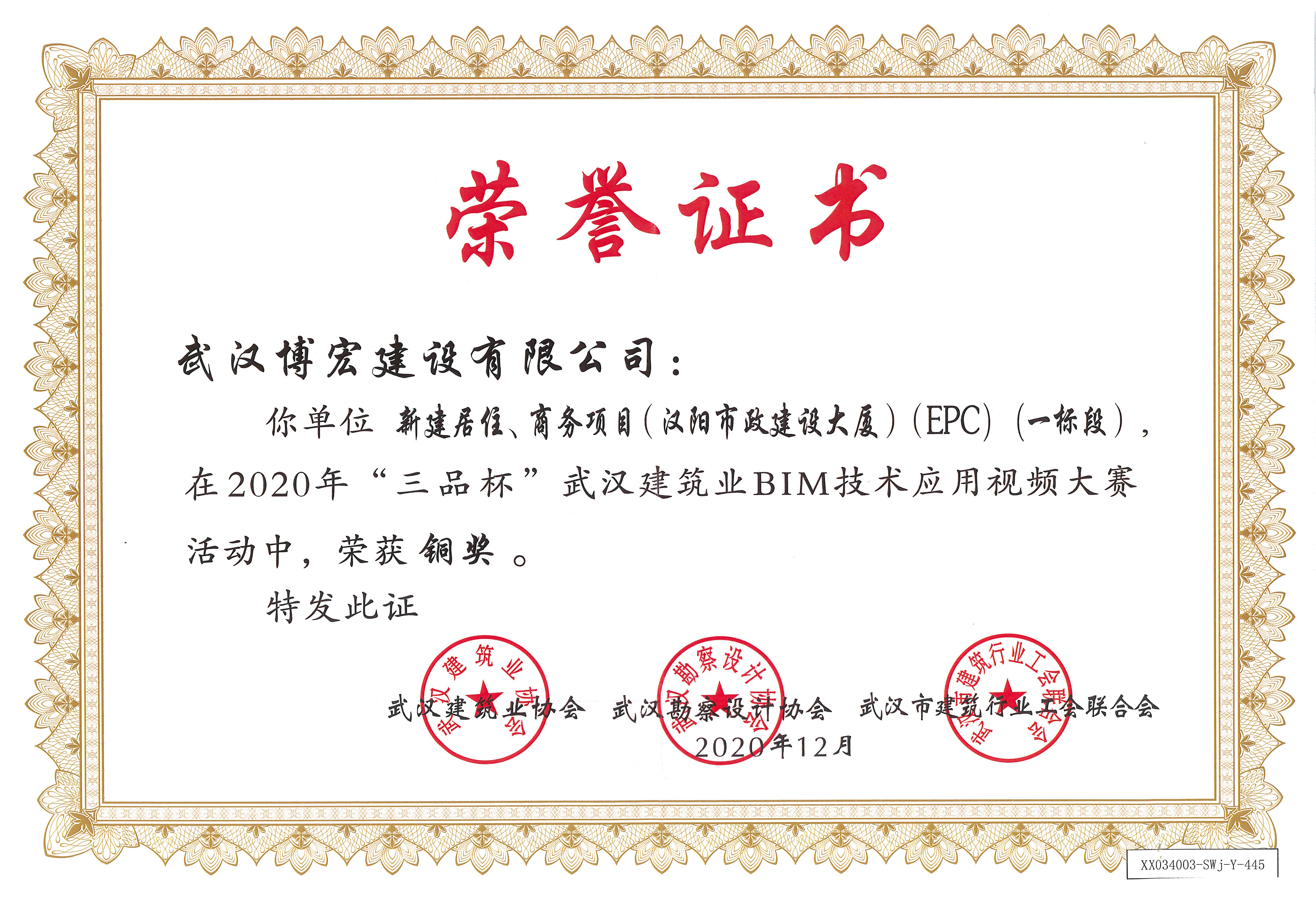 2020年三品杯铜奖(汉阳市政建设大厦项目一标段)