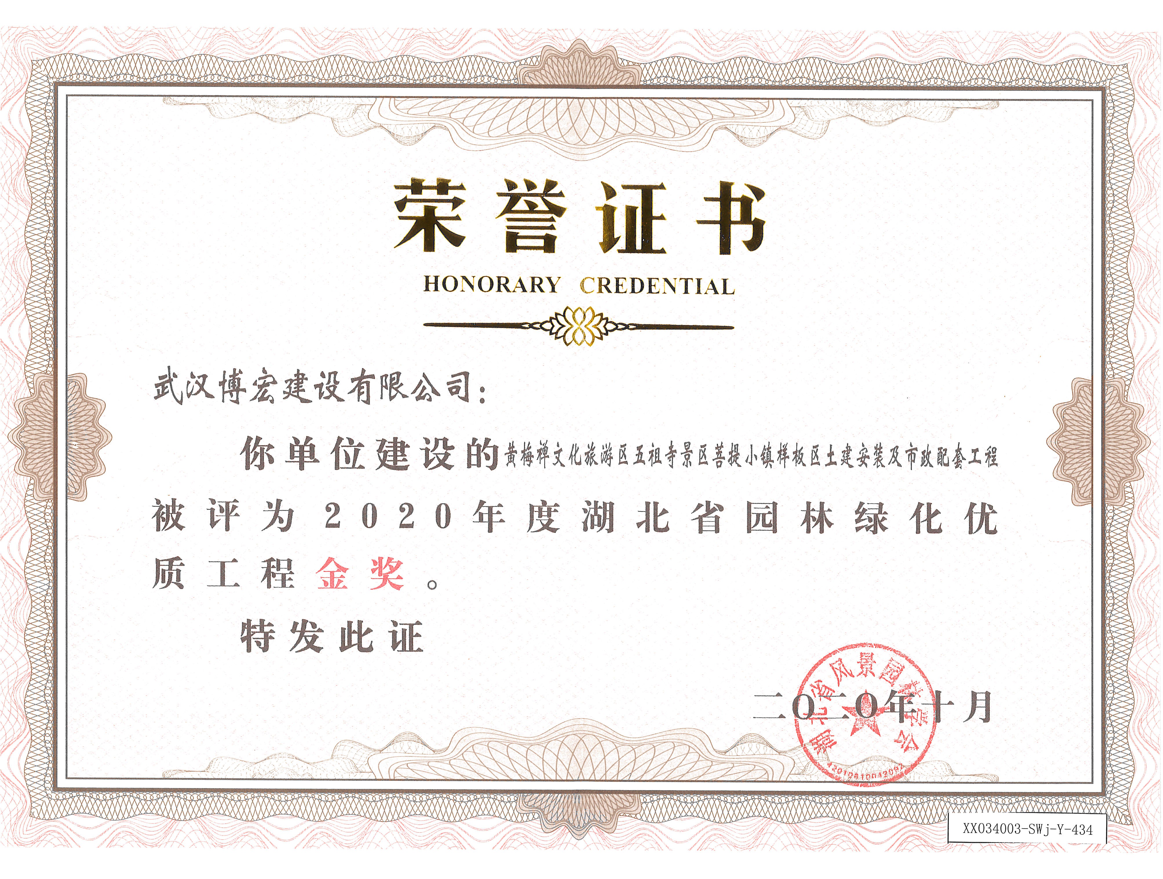 2020黄梅菩提小镇园林绿化优质工程金奖
