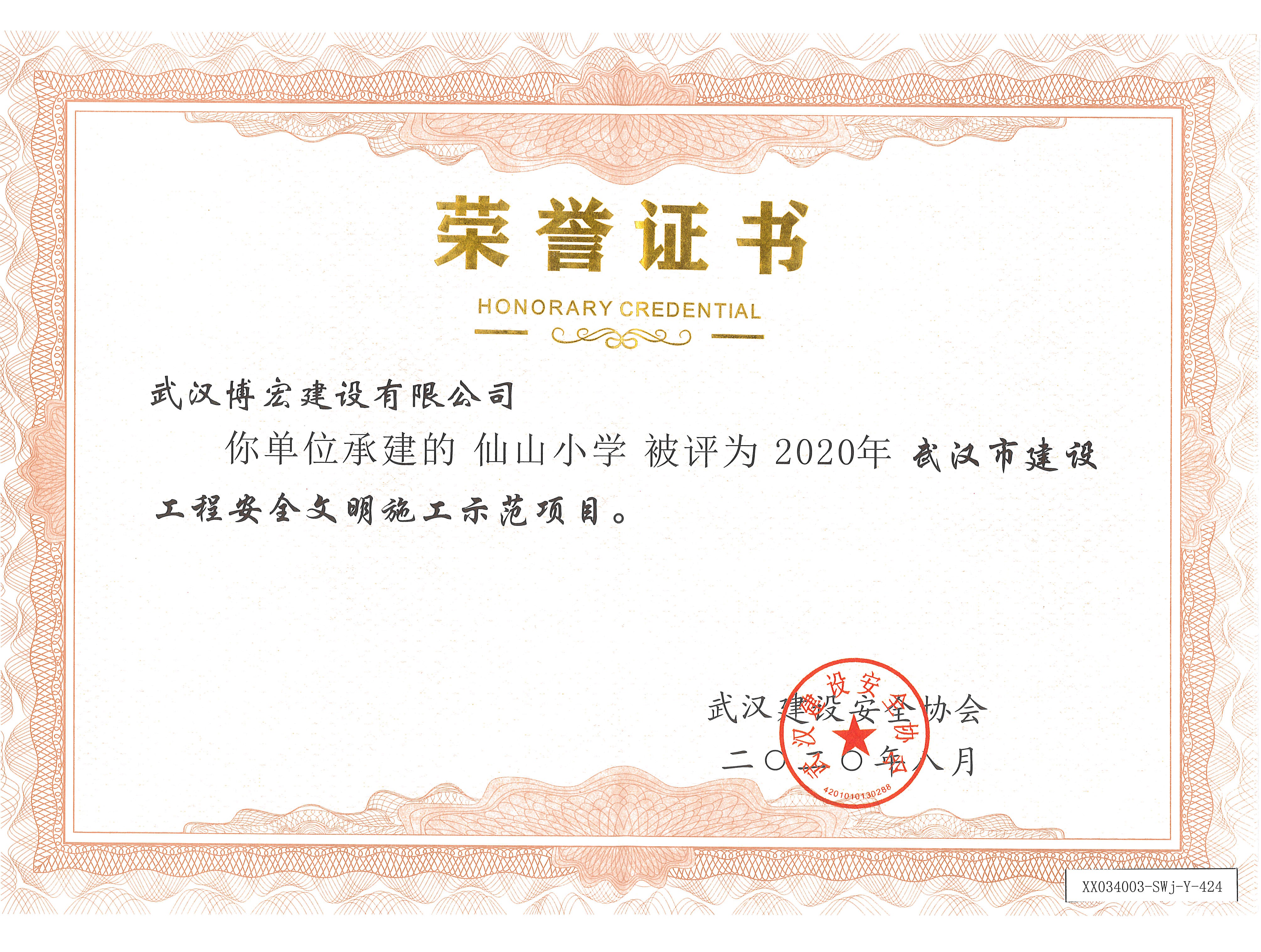 2020年武汉市建设工程安全文明施工示范项目(仙山小学)