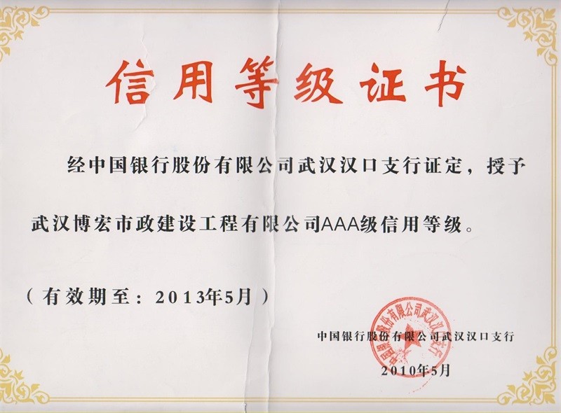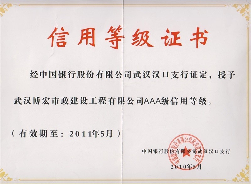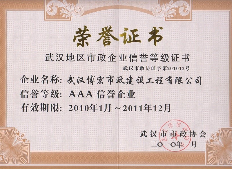 2010-2011年度武汉地区市政企业信誉等级证书
