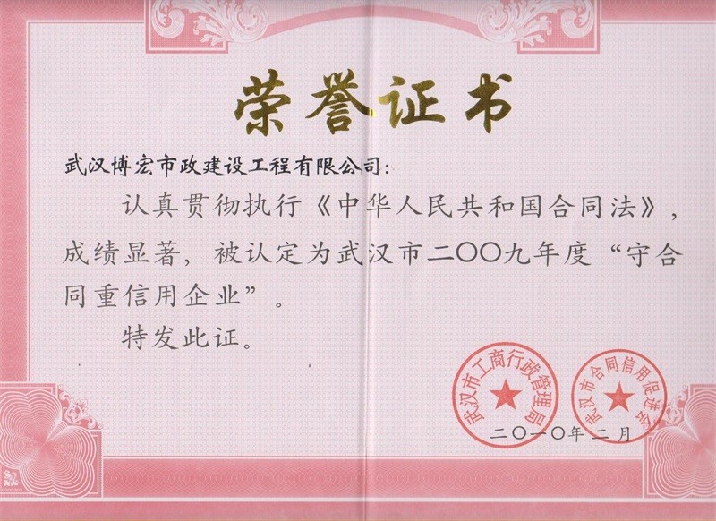 2009年度武汉市守合同重信用企业