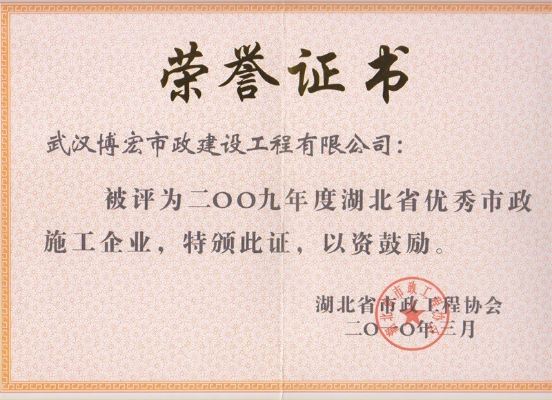 2009年度湖北省优秀市政施工企业
