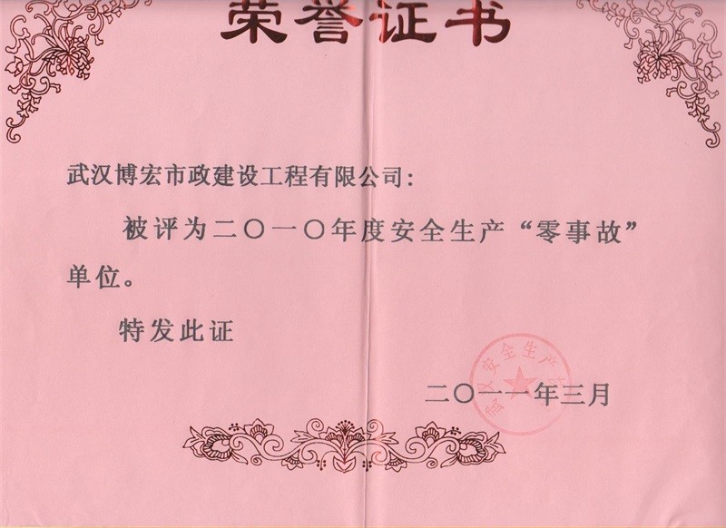 2010年度安全生产零事故单位