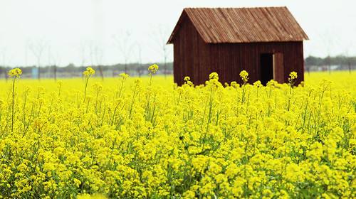 阳春三月,春风如沐。桃花红了、柳叶绿了,长江的水也暖和了。露水吻湿了片片绿叶,整个江城散发出如酒似蜜的清香。田里金黄的油菜花,成了蝴蝶的天地,美丽的蝴蝶在金黄色的舞台上跳着柔和而优美的舞姿,偶尔一阵微风吹来,油菜花立刻涌起了高低起伏的“金浪花”,远远望去,令人美不胜收!——这是我记忆中的春天油菜花地。