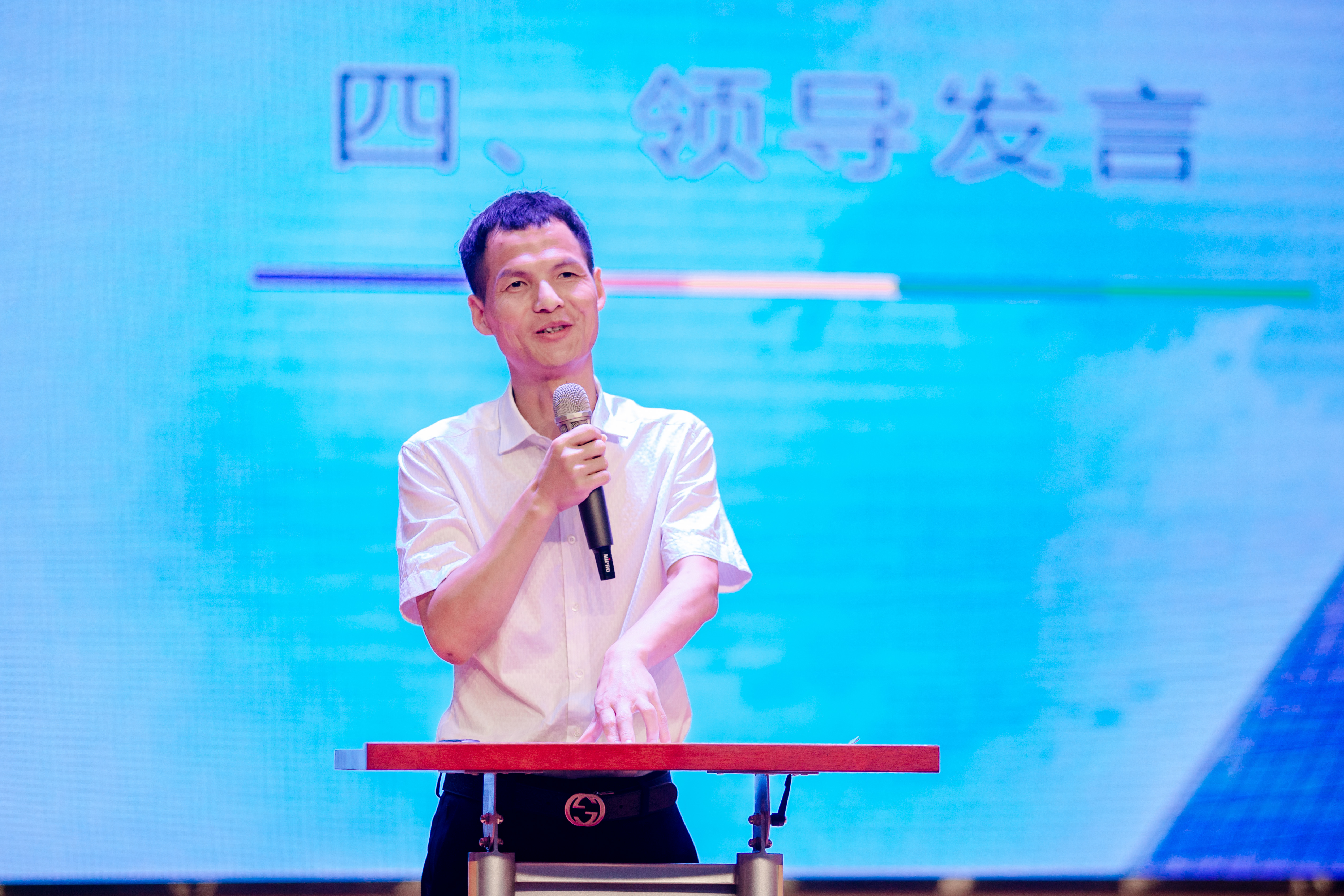 优秀员工经验分享之后,便是党支部书记、董事长邹勇的职场寄语环节。此刻场内气氛频频活跃,场外大雨如注,仿佛也因为这些“新鲜血液”的注入变得热烈沸腾!邹勇的接地气又富有哲理的真诚寄语引发深刻共鸣。他从自身工作经历经验出发,对新员工提出了摆正心态、敢于做难事、常怀感恩心、脚踏实地做实事、与企业同命运共呼吸并不断修炼品格,完善自我等建议寄语。从邹勇的寄语中,新员工们体会到了“博大宏远、自强不息”的深意,也深深感受到了他对“新能量”注入的欣喜和殷切期许。
