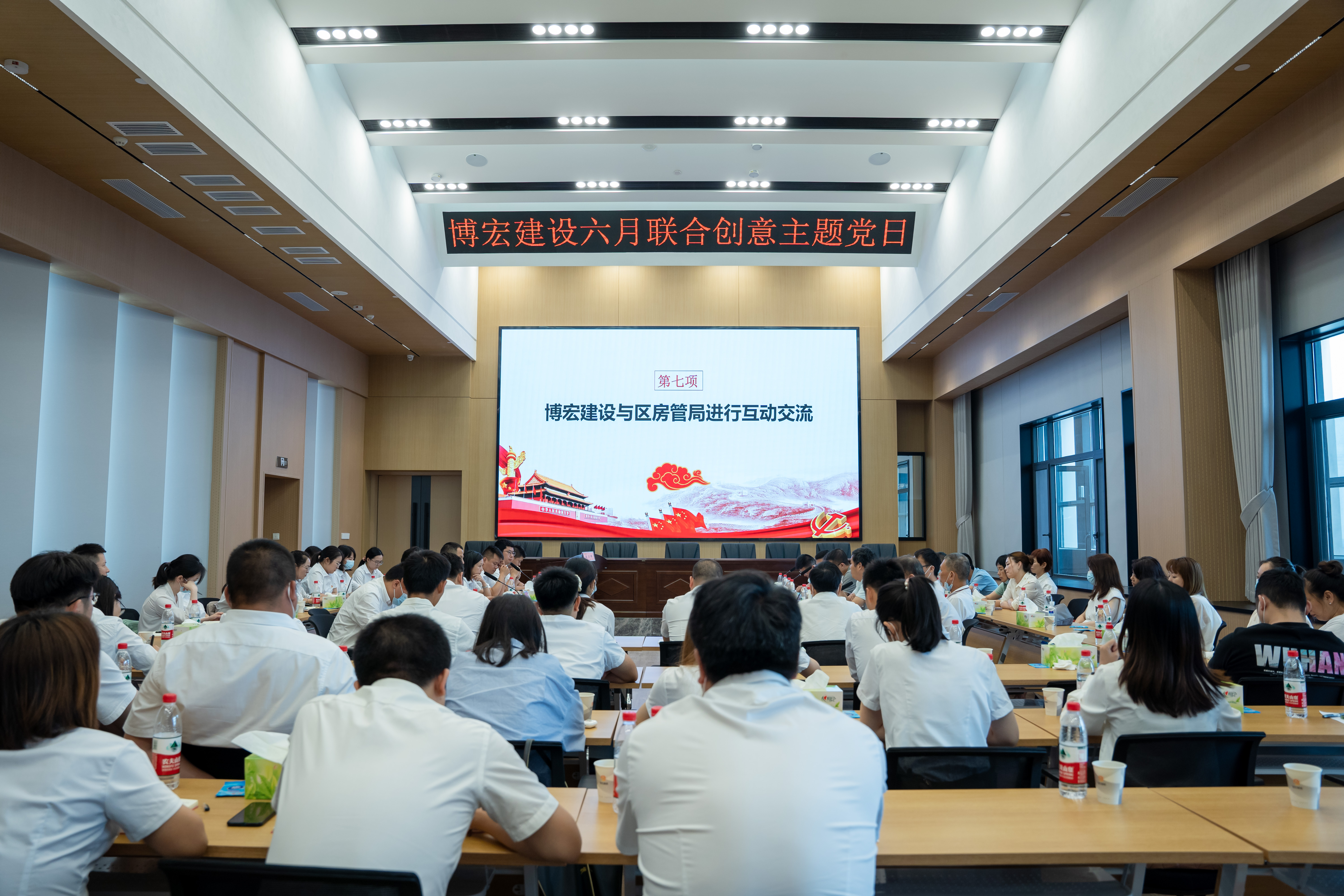 奋斗创造历史,实干铸就未来。6月9日上午,好博建设集团与汉阳区房管局联合开展6月创意支部主题党日,会议在好博建设集团31楼会议室举行。汉阳区房管局总工程师戴军,好博建设集团党支部书记、董事长、总经理邹勇等党员代表,共计60余人参加会议。
