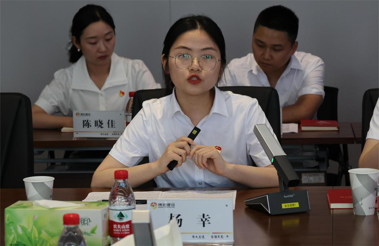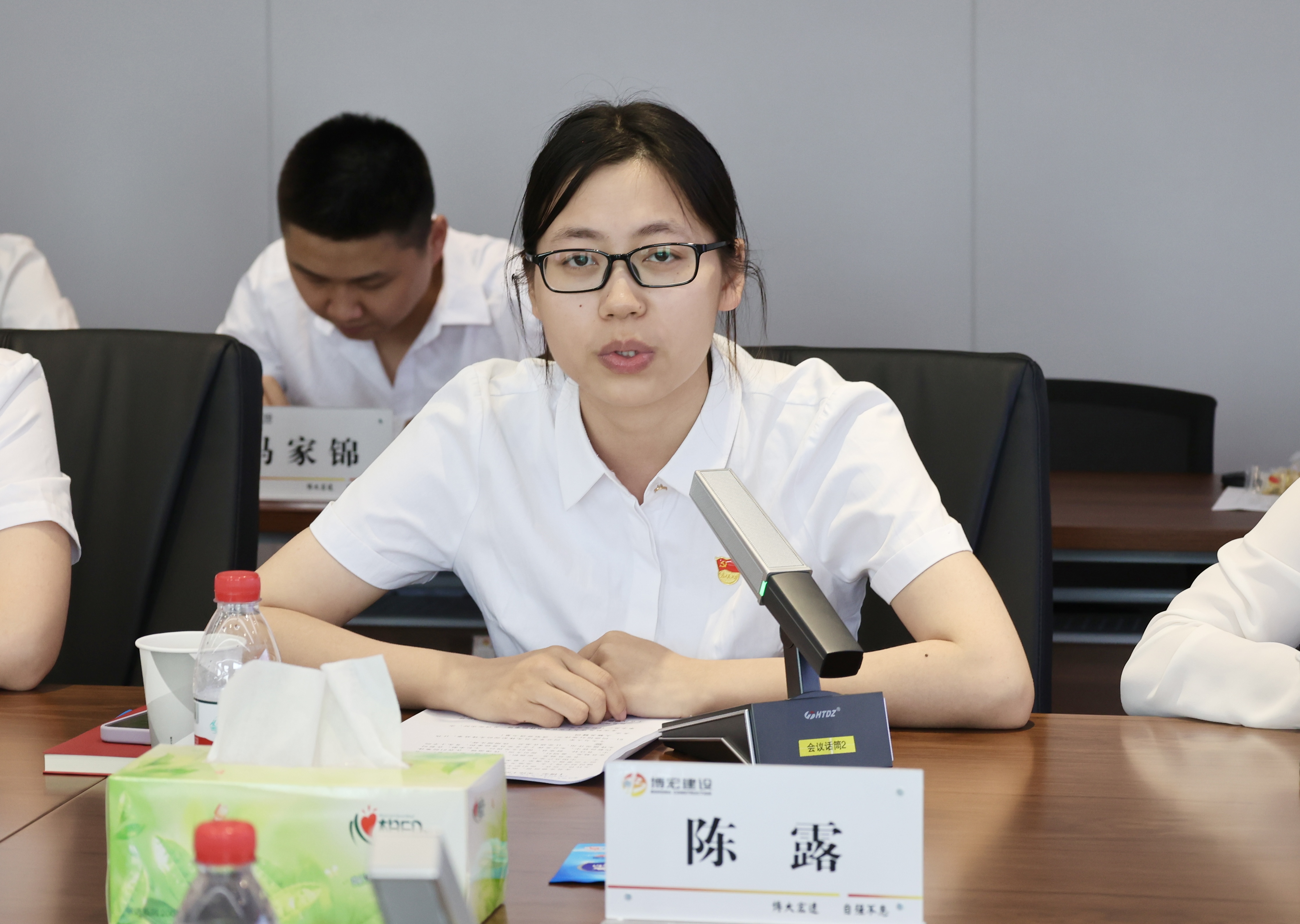 陈露对党员彭迎的先模故事进行了分享。工作认真,脚踏实地;勤恳务实,关心同事;工作认真负责,将个人成长融入公司发展是彭迎的标签。工作中,她能够站在公司的角度,为部门管理出谋策划;能够很快适应新的岗位,在新的业务区域快速开展工作;能够在业余时间精专业务知识,提高工作能力。彭迎积极进取、热情奉献的事迹打动着现场的每一位党员。